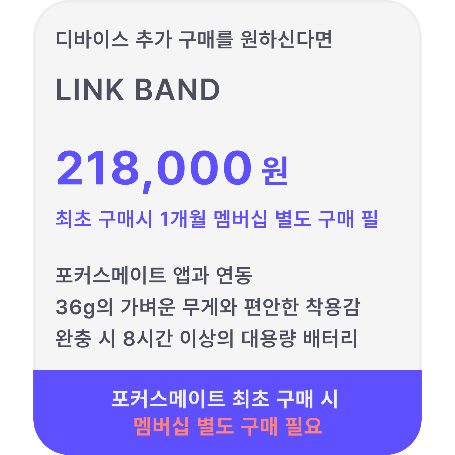- 1개월 멤버십은 포커스메이트의 LINK BAND 디바이스를 별도 구매하셔야 합니다.